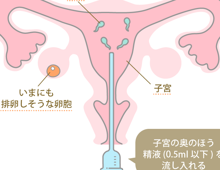 - 精子を注入する。 特定の時期に、器具を使用して精子を子宮内に直接導入します。