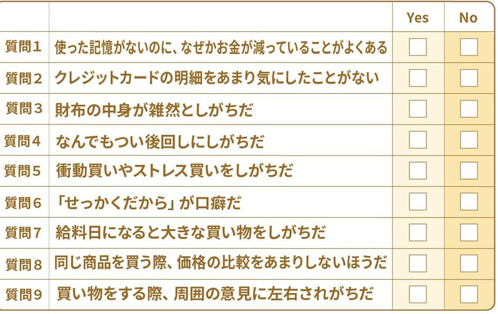 - 不要な出費を削減する。 無駄な支出を避けるために、計画的に消費する習慣を身につけます。
