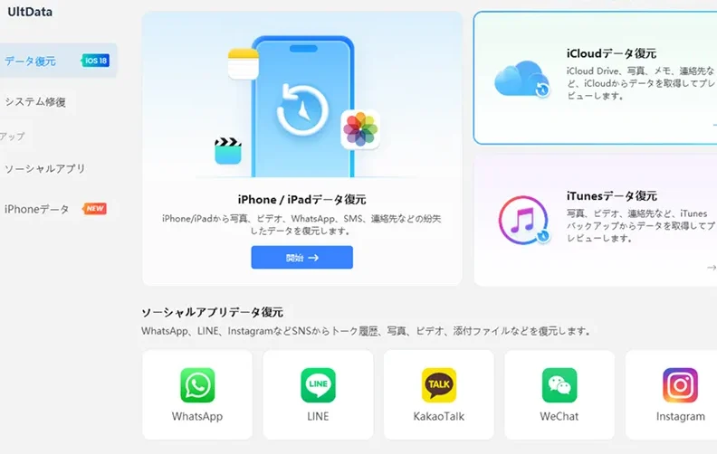 iCloudを使用したデータのバックアップと復元は、次のように行います。