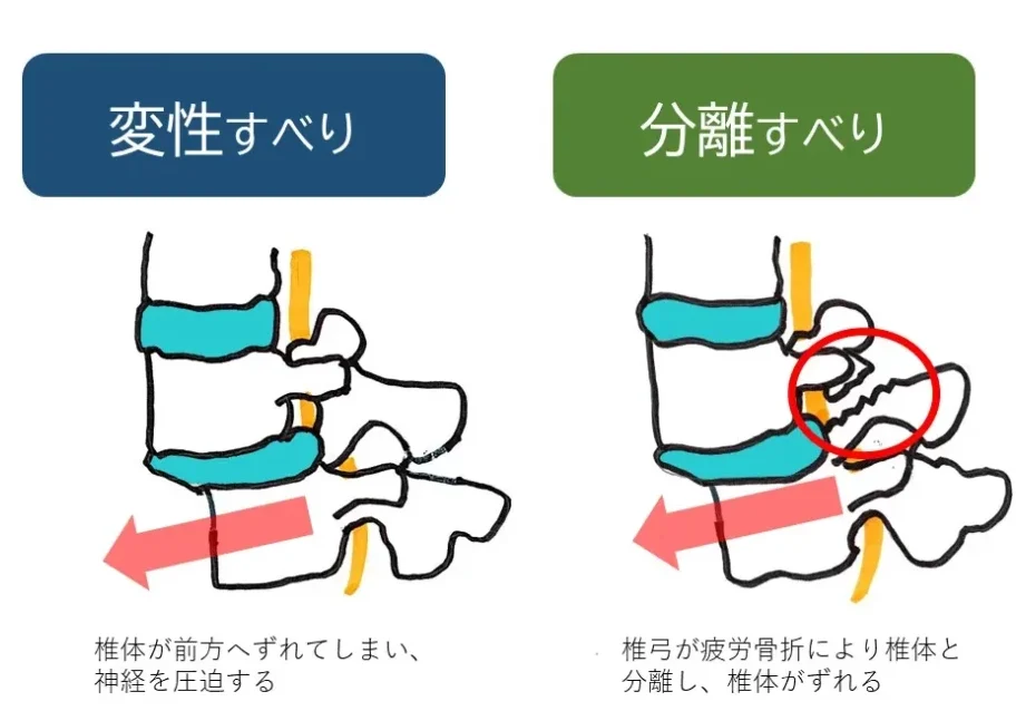 - 外傷性すべり症: 事故や転倒により椎骨がずれること。