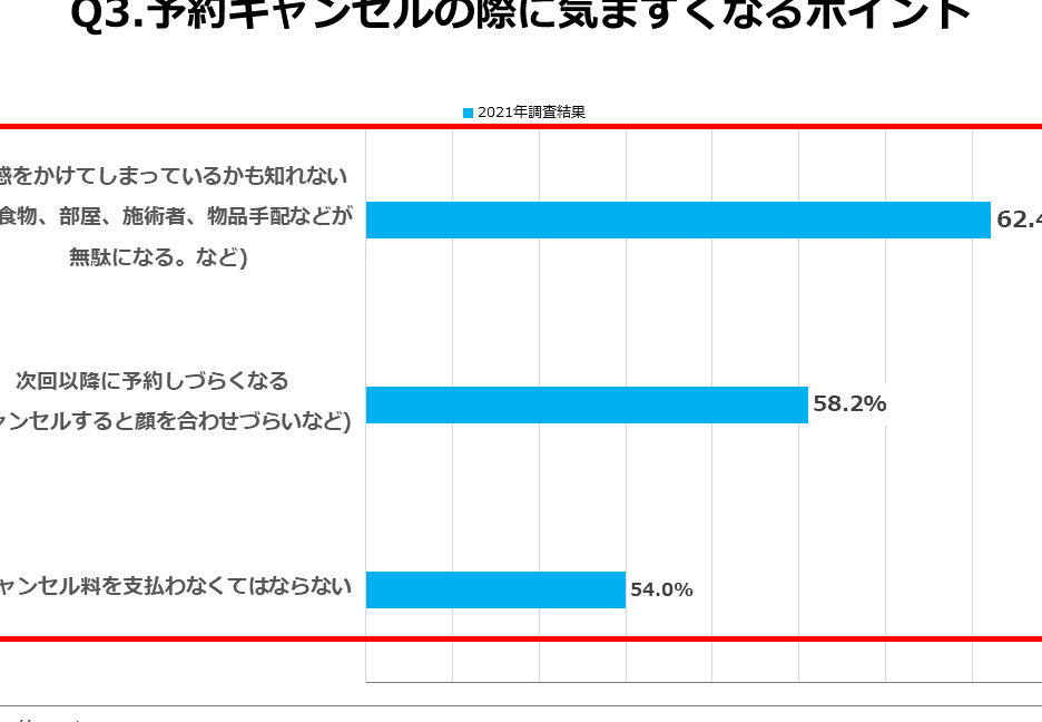 - 予約キャンセルの連絡遅れ – 予約時間の1時間前にキャンセル連絡を入れた場合、規定のキャンセル料が発生します。