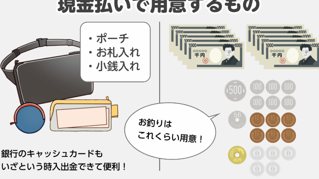 - 現金を用意: 乗車中に現金を手元に用意します。