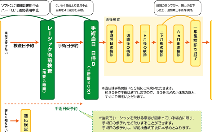 - 手術当日の注意事項を確認する: 手術前日にはコンタクトレンズを外します。