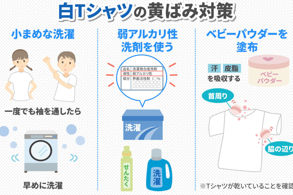 黄ばみを防ぐための取り扱い方法は以下の通りです。