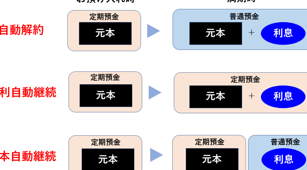 - 固定金利: 預入時点で利率が決まり、期間中は変わらない。