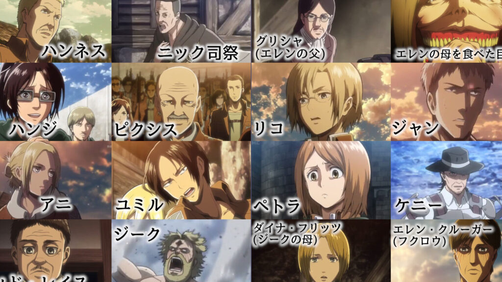 - エレン・イェーガー: 壁の巨人の秘密を探求する主人公で、巨人化する能力を持っています。