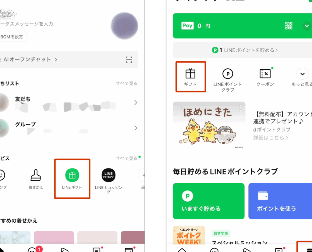 - 「ギフト」通知を確認します。新しいメッセージが届いている場合は、必ず確認してください。