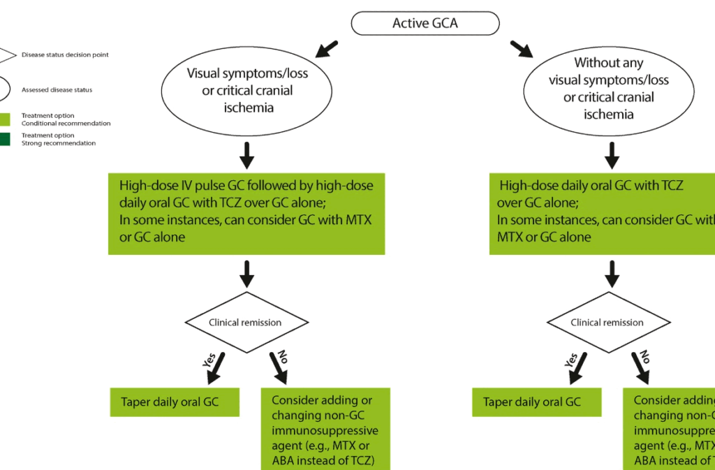 巨細胞性動脈炎の治療は、症状の軽減と合併症の予防に焦点を当てています。以下の治療法が考えられます。