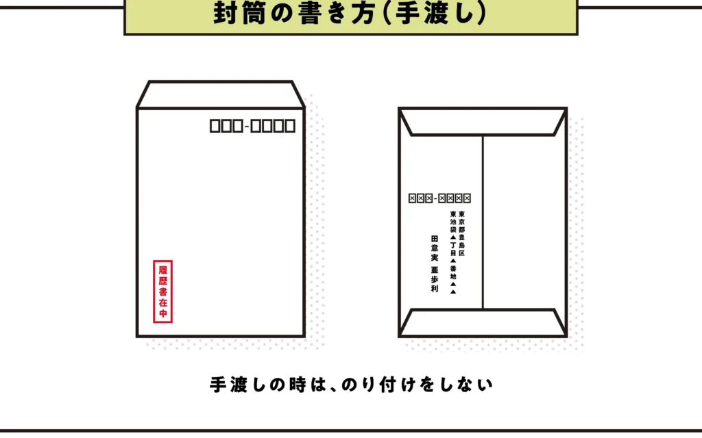 - 履歴書をきちんと折りたたまずに入れる。 折れ曲がりを防ぐため、しっかりした表紙が必要です。
