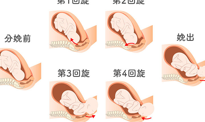 - 赤ちゃんが外に出る。 分娩時に母体が力を入れ、赤ちゃんが産道を通る。