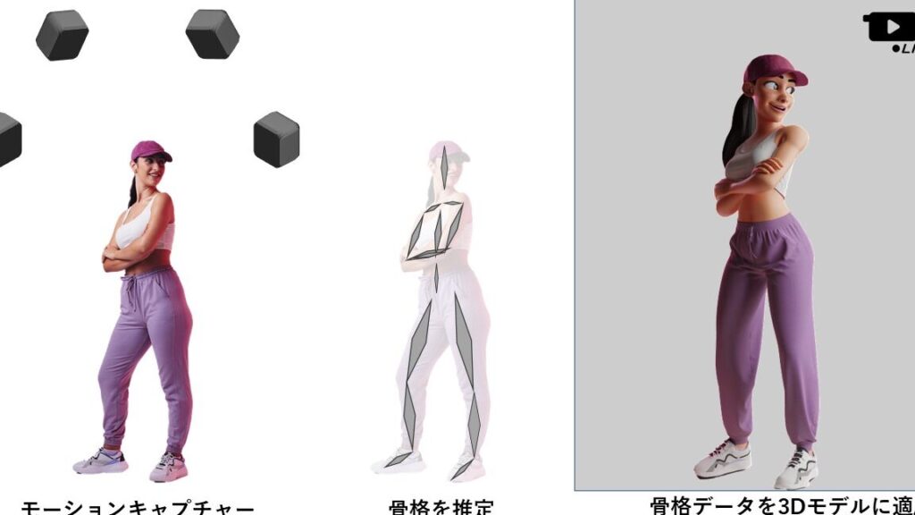 - アニメーション設定:次に、モーションキャプチャー技術を用いてキャラクターに動きを与えます。リアルタイムでのアニメーションが可能です。
