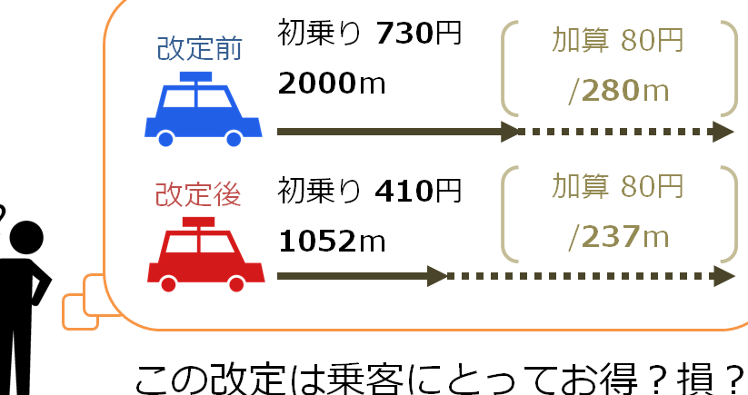 - 距離にかかわらず、乗車してすぐに加算されます。