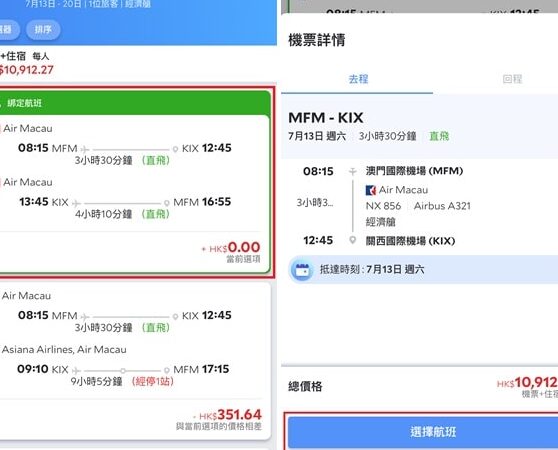 - 航空券を選択する