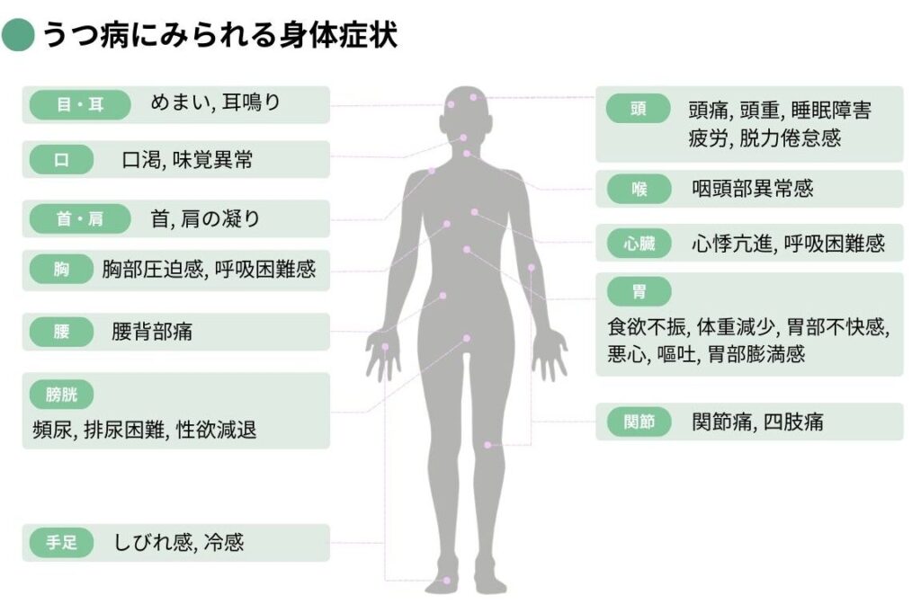 うつ病には多くの症状がありますが、特に以下のものが一般的です: