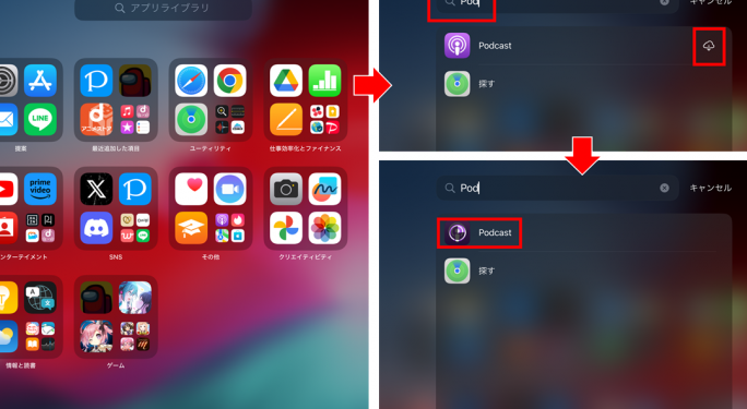 隠れたAppが見つかった場合、それらを許可することでホーム画面に再追加できます。また、検索機能で特定のApp名から直接探すことも可能です。