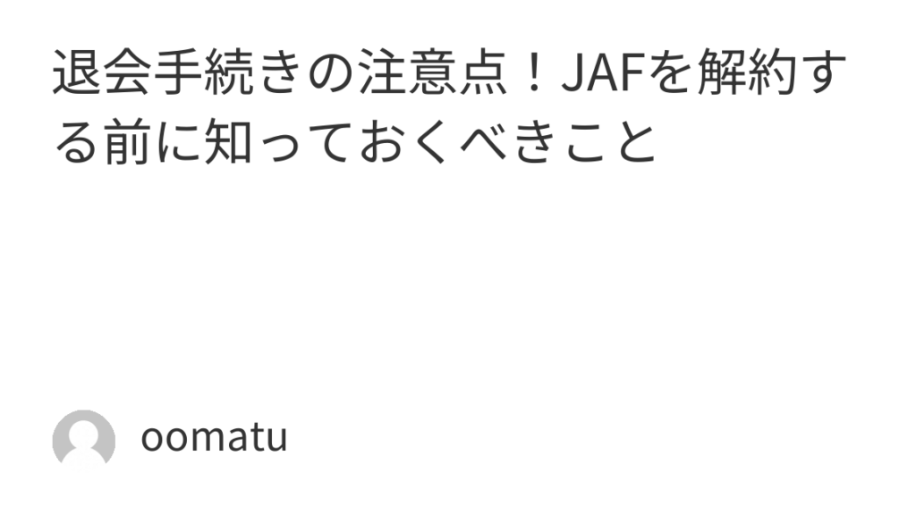 - 解約方法: JAFでは電話以外にもメールやウェブサイトからの解約も可能ですが、それぞれ異なる手順がありますので事前に調べておきましょう。