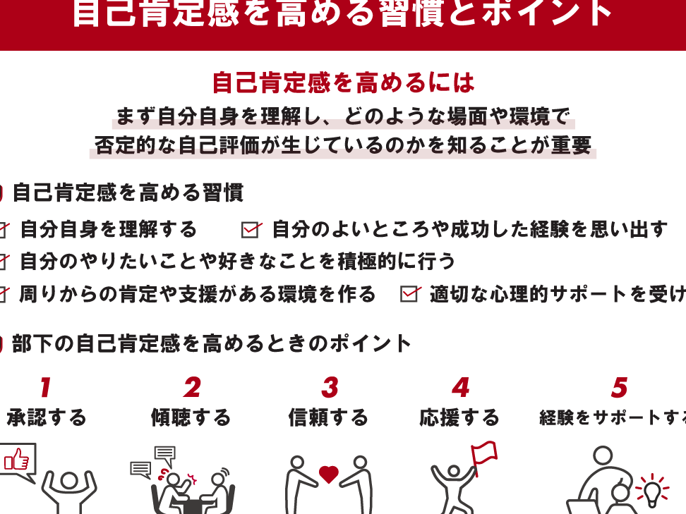 - 新しい挑戦への意欲: 過去の成功から自信を得て、新しい課題にも積極的になれるよう努めます。それによってさらなる自己評価向上につながります。
