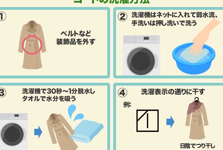 - シーズンごとのクリーニング: 冬物コートはシーズン終了後に、一度クリーニングすることが基本です。