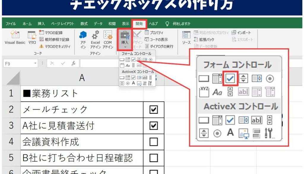セルにチェックボックスを挿入する手順