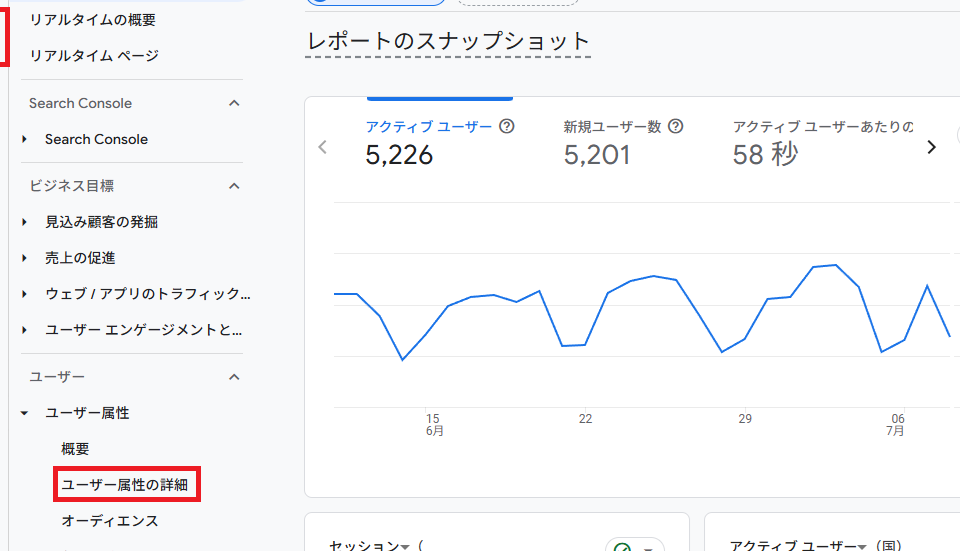 まず、ユーザー属性レポートにアクセスするためには以下のステップが必要です。