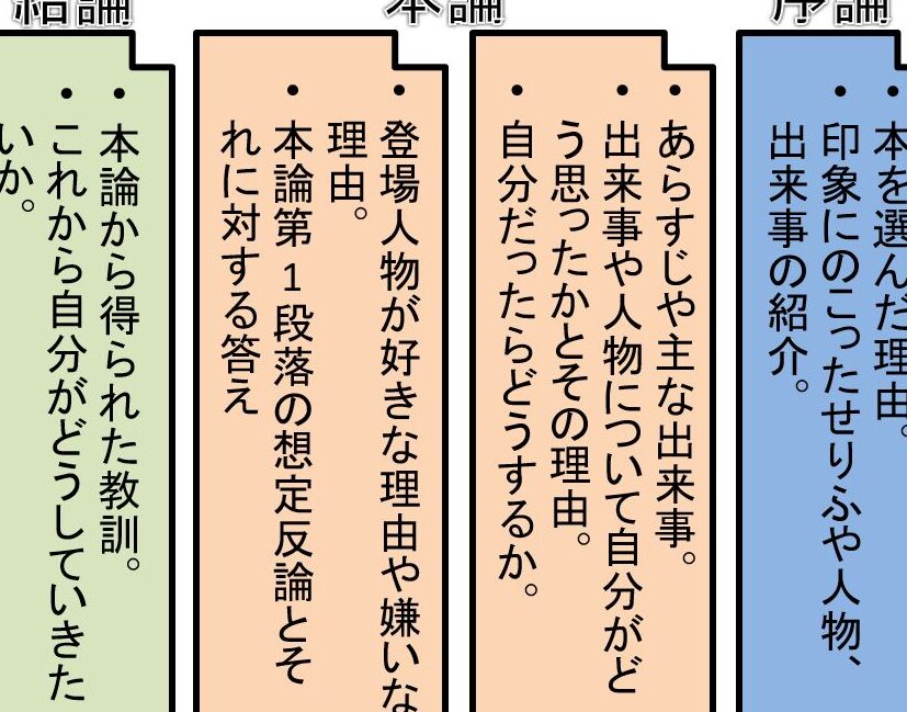 次に、感想文全体の構成案を練ります。一般的には以下のような流れになります。