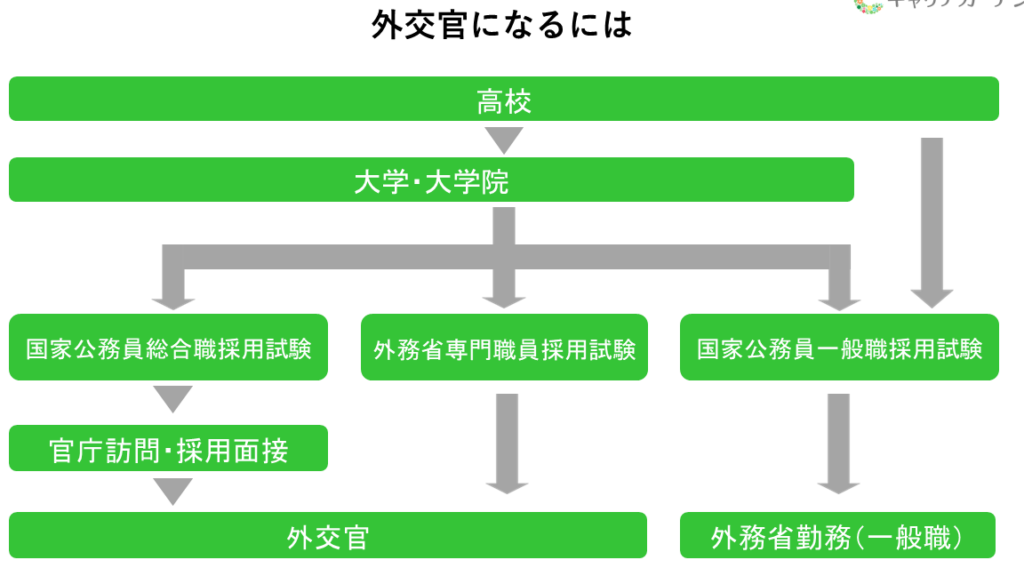 - 入省試験: 外交官となるためには、国家公務員試験(外務省)を受験し合格する必要があります。