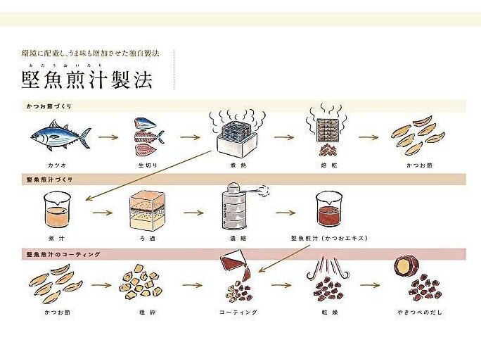 - 燻製過程で発生する煙成分はカツオに吸収され、その結果として豊かな旨みと香ばしさが生まれます。この風味付けは、高品質な鰹節特有の深い味わいを実現します。