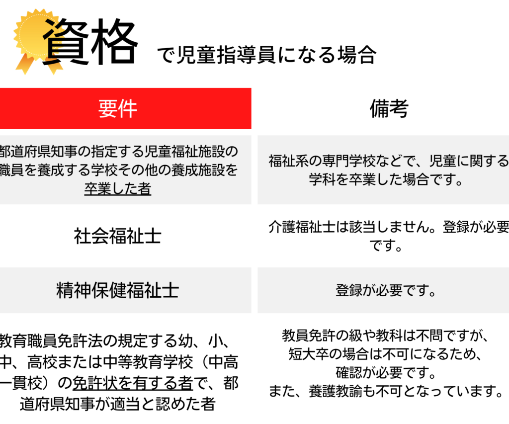 - 大学卒業(心理学、教育学または社会福祉など)