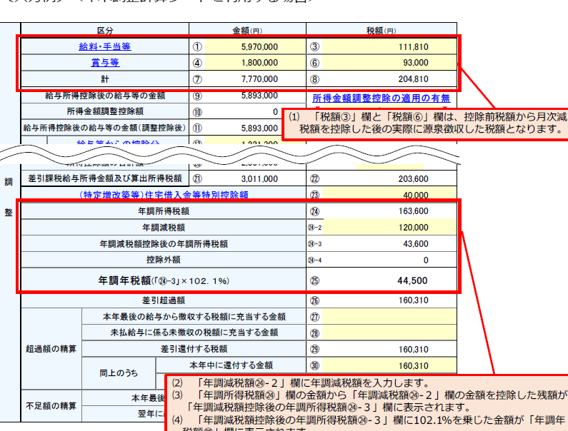 - 年収や控除対象額などの詳細