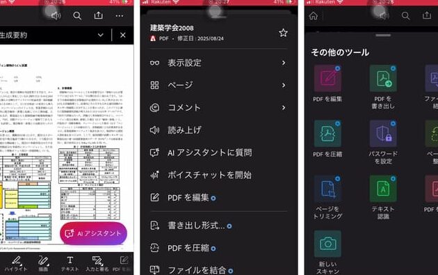 各PDFビューアアプリには便利な機能が搭載されています。それぞれ使い方次第ですが、一部をご紹介します: