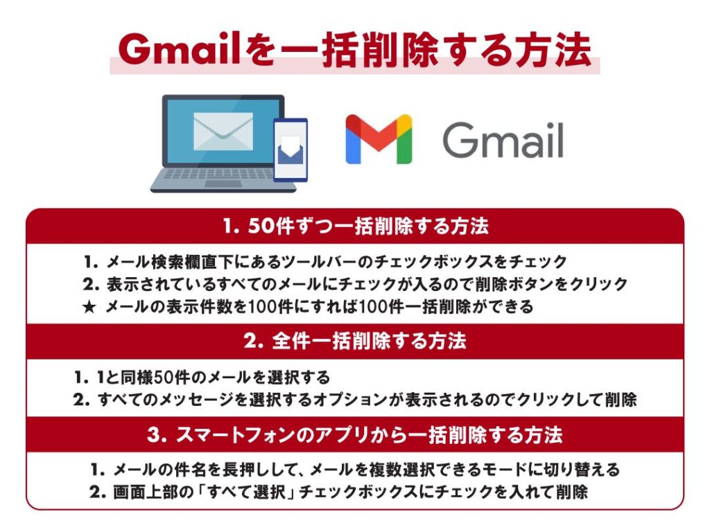 Gmailの溜まったメールはどうやって消せますか?基本的な方法