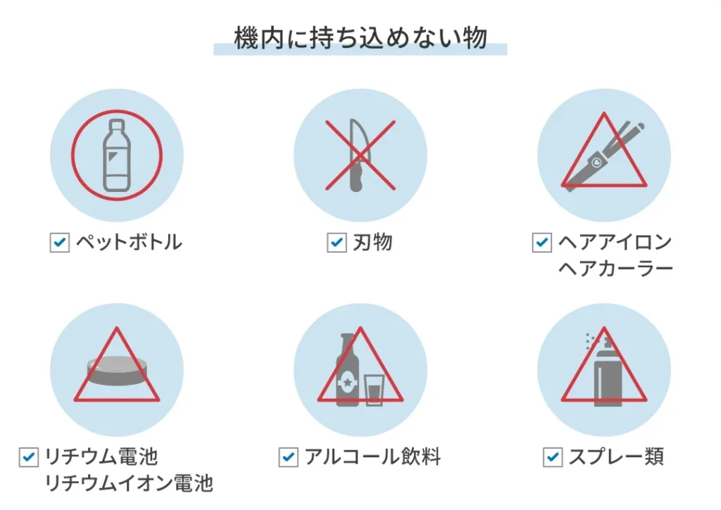- 持ち物の整理: 手荷物には液体やジェル状のものは100ml以下である必要があります。また、それらは透明なプラスチック袋に入れなくてはいけません。