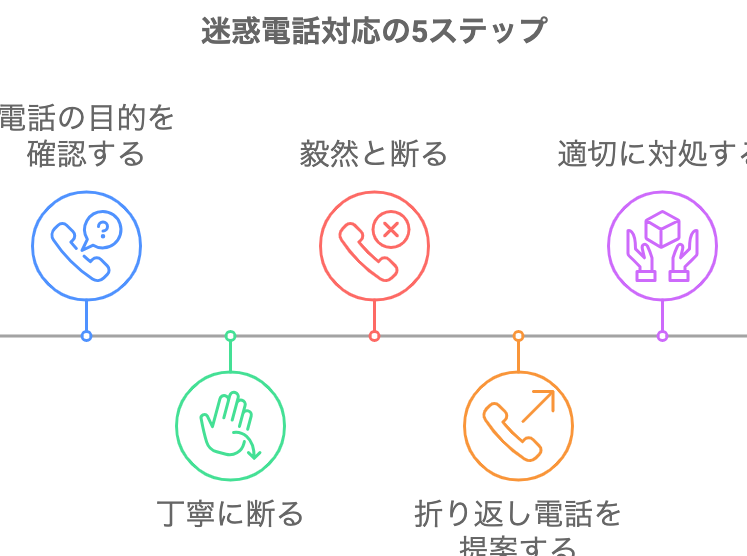 迷惑電話がかかってきた場合、次の点に注意して対応しましょう: