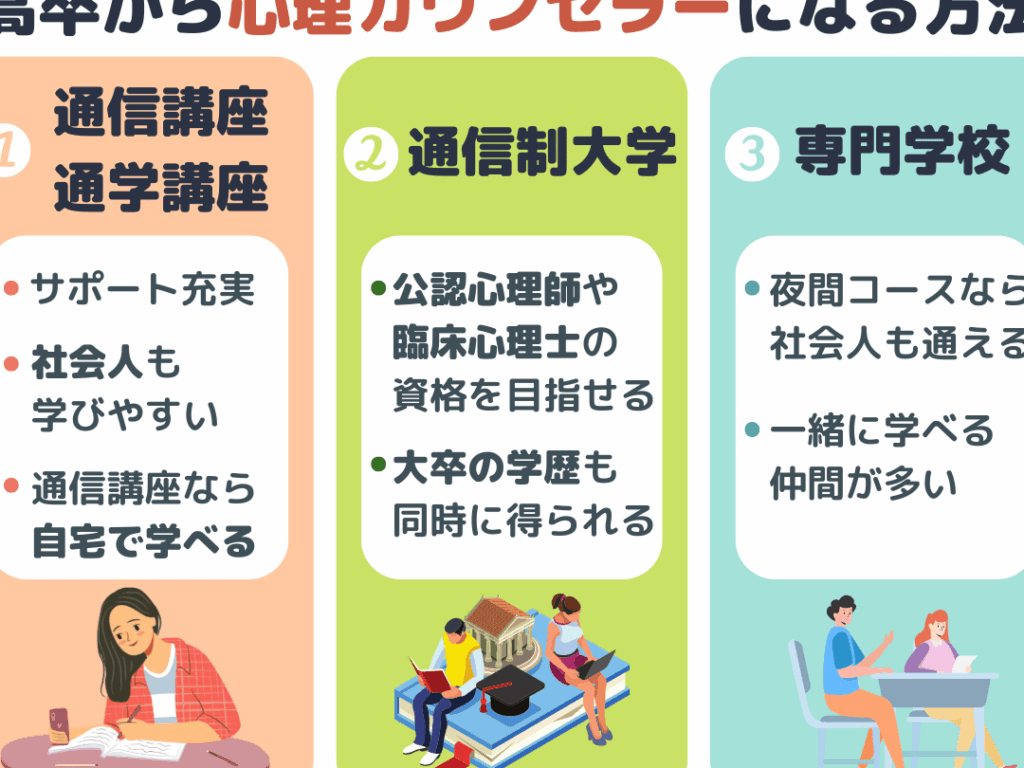 - 専門学校:カウンセリング技術を習得するために、専門学校でのプログラムも有効です。