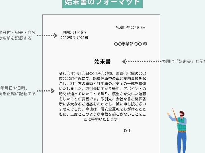 - 始末書という言葉を明記します。