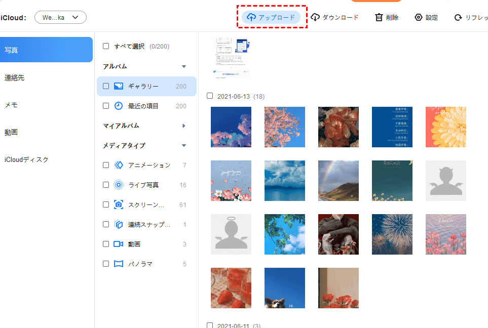 ログイン後には、自分がどのようなデータをiCloud上で管理しているか確認できます。ここでは主な機能について説明します: