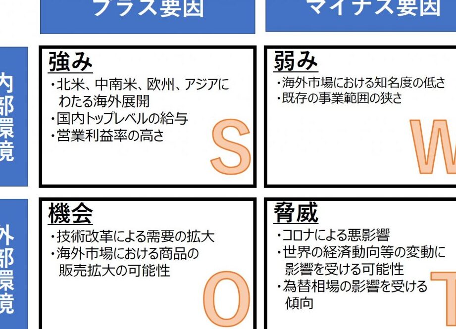 - 製品情報:主力商品やサービスについて理解する。