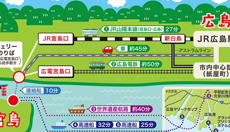 私たちが宮島を訪れる際、公共交通機関を利用するのは非常に便利で効率的です。広島市から宮島までは、電車とフェリーを組み合わせる方法が一般的です。このセクションでは、具体的なアクセス方法や運賃について詳しく説明します。