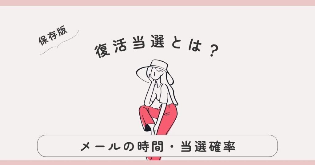 - 全員に通知されるわけではない: 復活当選になった場合でも、その通知は特定の手続きや条件を満たした人にのみ行われます。したがって、自分だけが対象外になる可能性もあります。