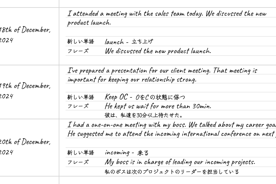 - SNS投稿: 英文ブログを書くことで、自分自身のスタイルを確立しつつ、新たなボキャブラリーも身につけることにつながります。