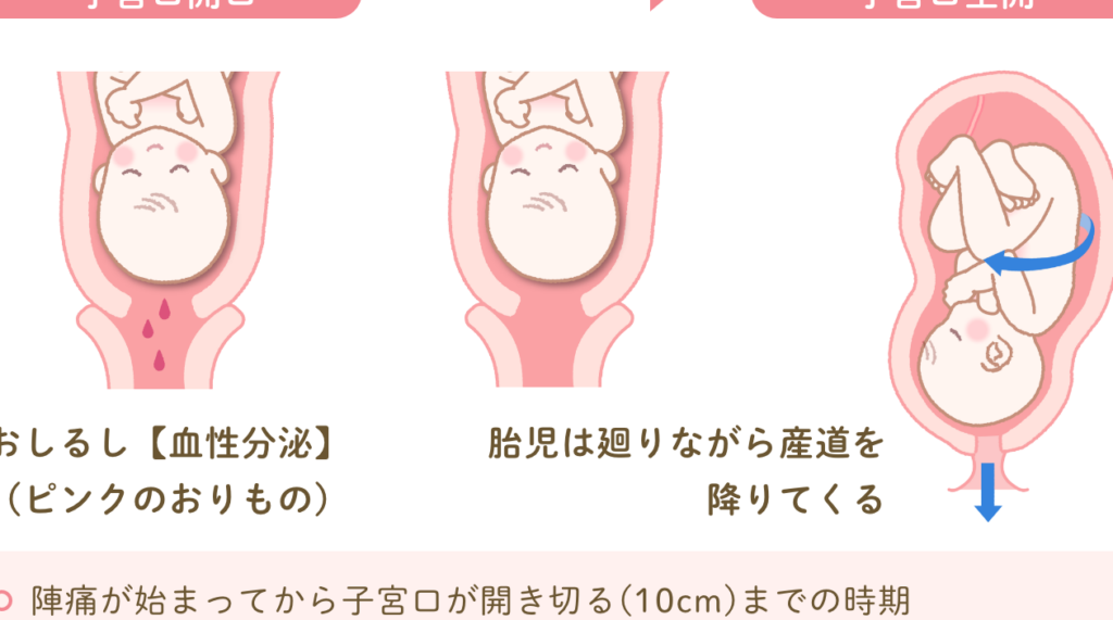 - 陣痛: 定期的な陣痛によって子宮口は徐々に広がります。これには時間がかかり、その間に母体もリラックスした状態を保つことが必要です。