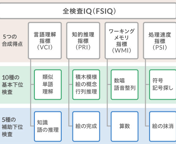 - 言語能力:語彙や文法理解力を測定