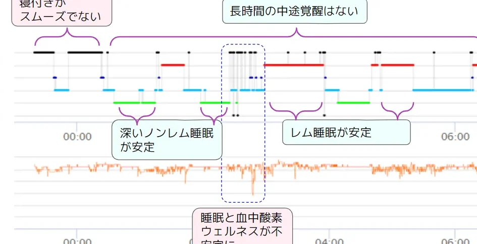 これらのデータを総合的に分析することで、睡眠障害やその他の健康問題を特定できます。