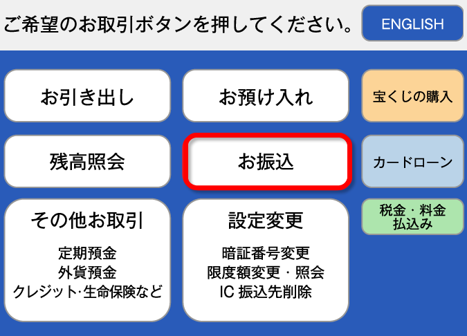 画面上で表示されるメニューから「振り込み」オプションを選びます。一部のATMsでは「送金」と表示されている場合もありますので、自分が利用している機器によって適切な項目を選択してください。