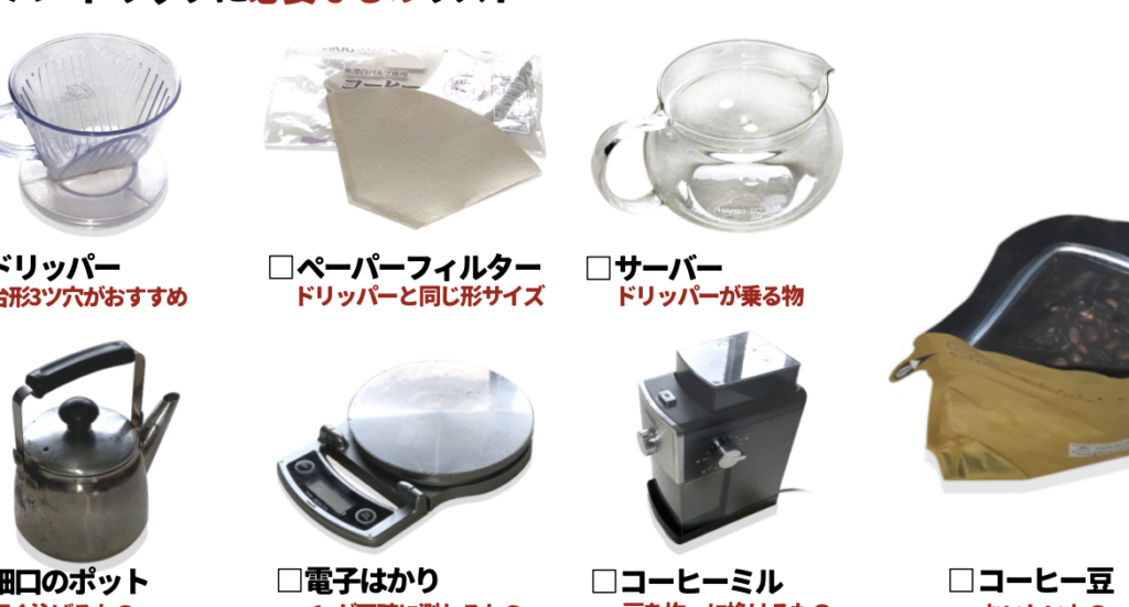 ドリップコーヒーは、多くの人に愛されているシンプルな方法です。この方法では、細かく挽いたコーヒー豆にお湯をゆっくりと注ぎます。以下は、その手順です: