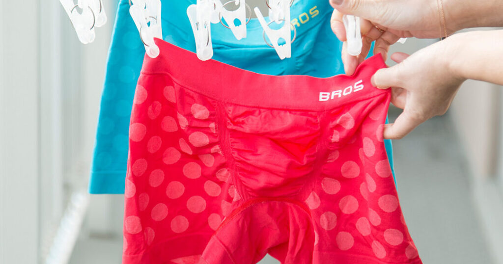 - 吊るし干し: 逆に、ストレッチ性のある素材の場合は吊るして自然乾燥させたほうが効果的です。この時も間隔を空けて風通りよくすることが大切です。