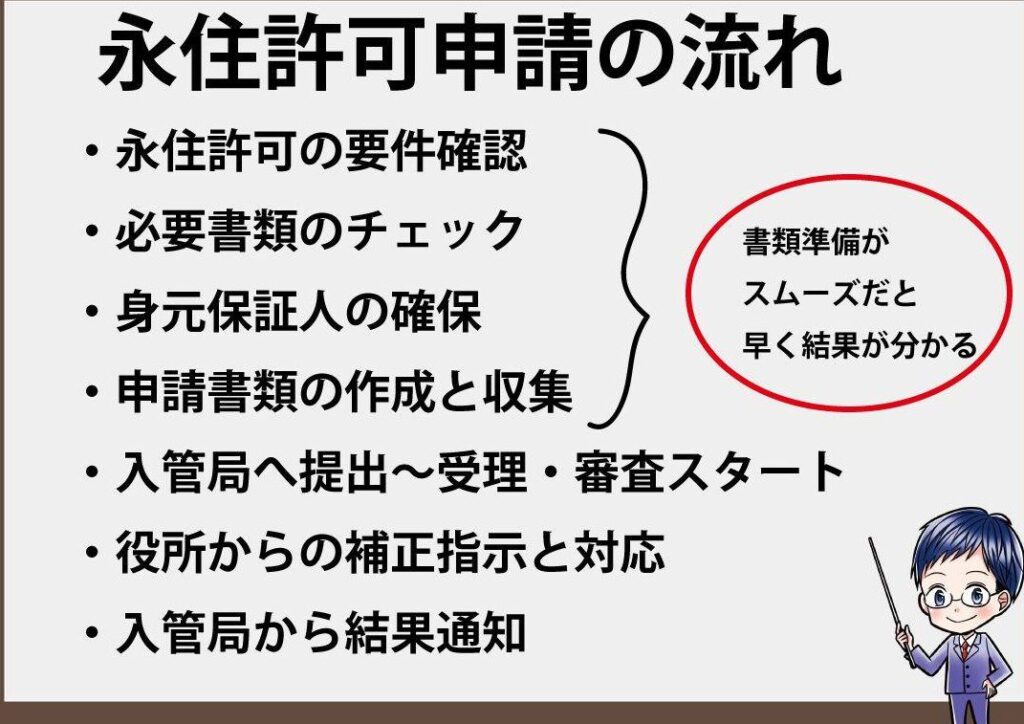 永住権の申請プロセスは通常6ヶ月から1年程度ですが、状況によって異なる場合があります。必要書類が不完全だったり、追加情報が要求されたりすると、さらに時間がかかることがあります。