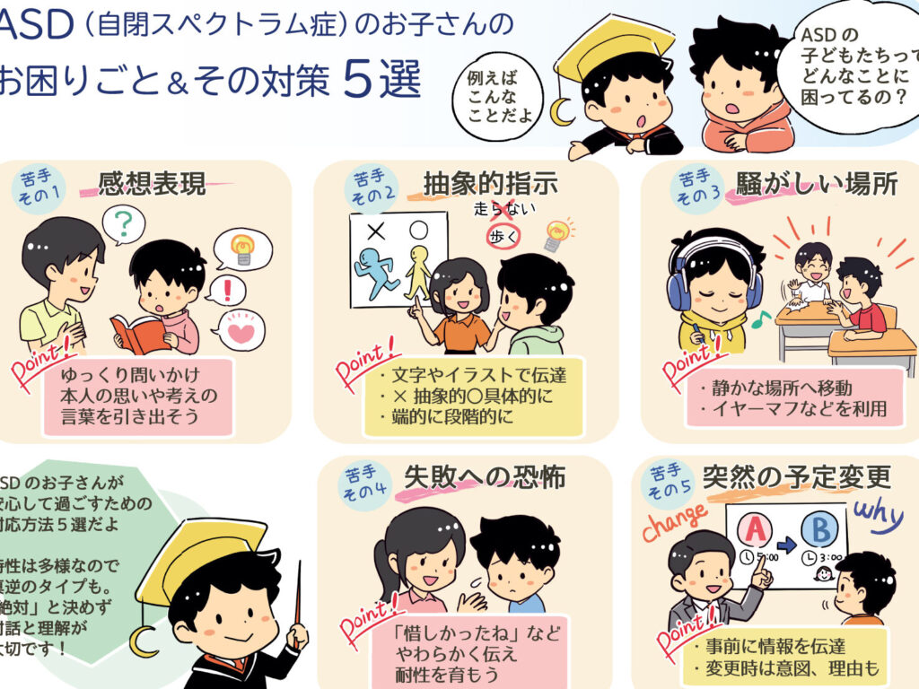 ASDに関連する具体的な指針として、私たちはまずその特性を理解し、それに基づいた支援方法を考える必要があります。具体的には、個々の特性に応じた対応が求められます。このようなアプローチは、ASDの症状や特徴によって異なるため、一概には語れませんが、以下のポイントは共通して重要です。