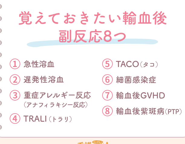 輸血後すぐに発生することがあり、高度な注意と迅速な対応が求められます。