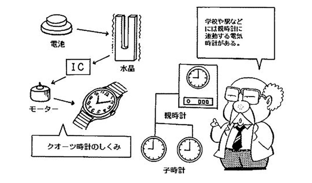 - クォーツ時計では、水晶振動子によって正確な周波数で振動し、その信号を基に時間を刻みます。